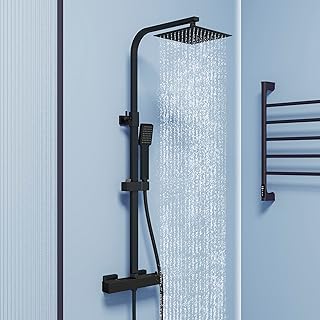 Huibathroom Thermostat Shower System, Square Thermostatic 38 °C Shower Mixer Se..